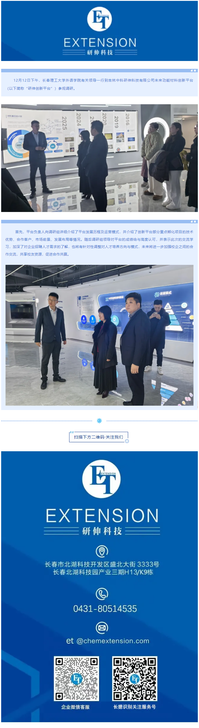 長(zhǎng)春理工大學(xué)外語(yǔ)學(xué)院有關(guān)領(lǐng)導(dǎo)調(diào)研中科研伸未來(lái)功能材料創(chuàng)新平臺(tái)